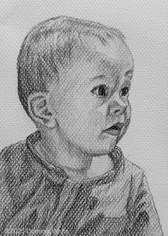 Despite the lightfastness of the materials, portrait drawings should be matted and framed under glass and hung out of direct sunlight for maximum longevity.